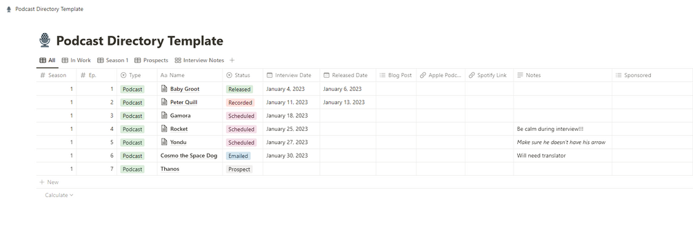 The only Notion template you'll need for podcasting. Scheduling, Talking Points, Links for episodes, etc!